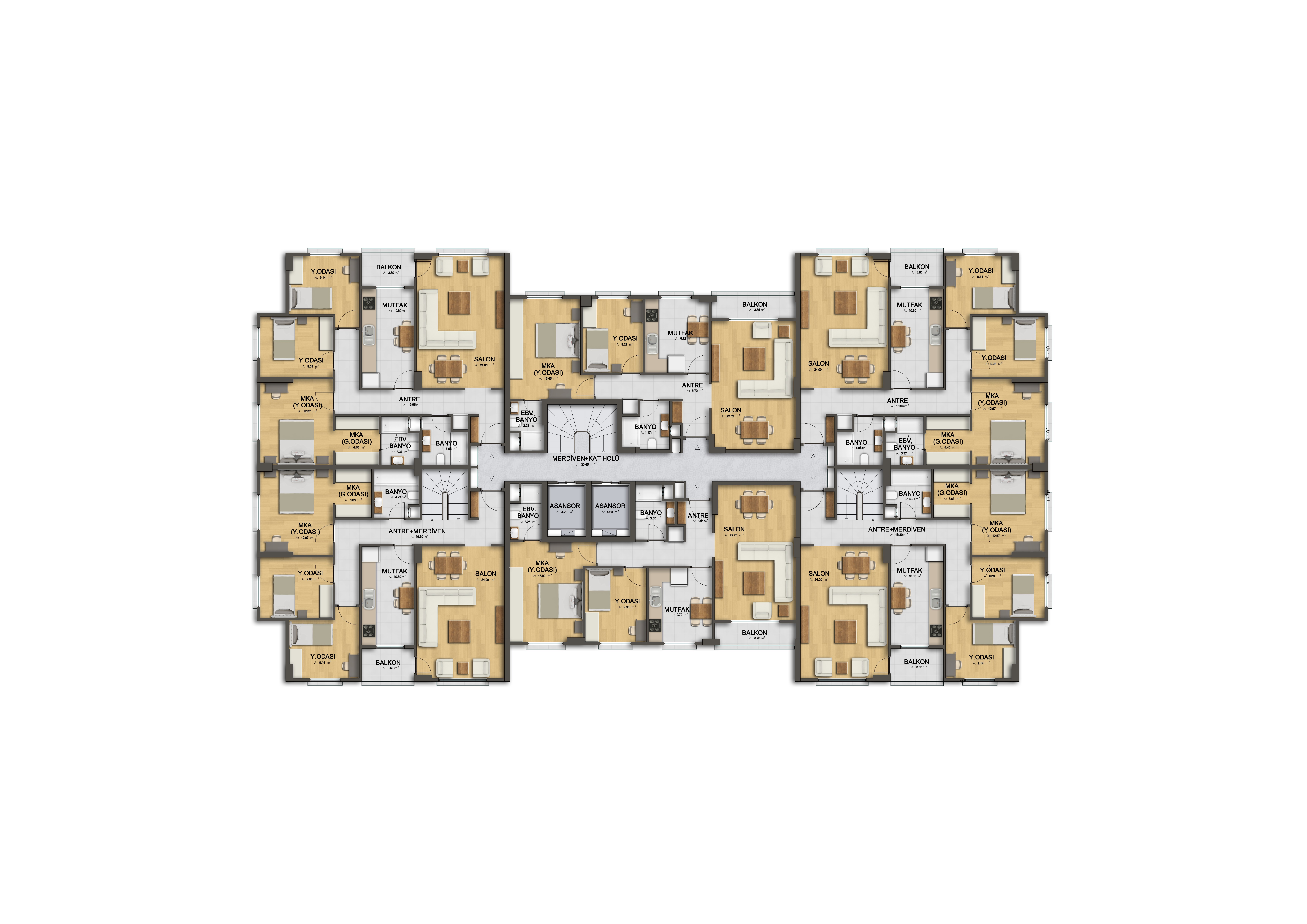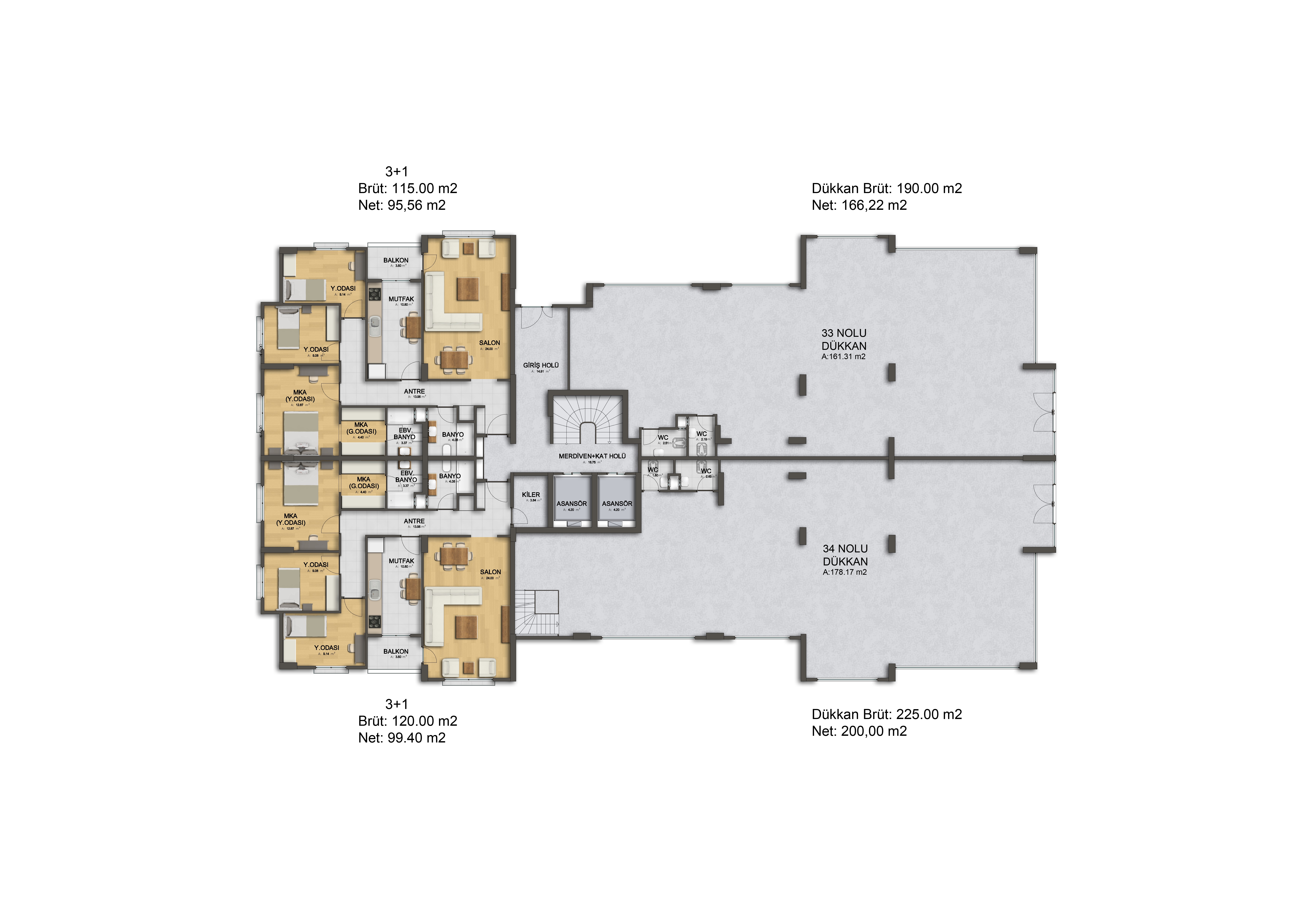 Our Mavera, Letafet project is 32 ultra-luxurious 2 + 1 , 3,5 + 1 apartments with modern and attractive interior design. It consists of 2 units of 225 m2, 190 m2 shops.